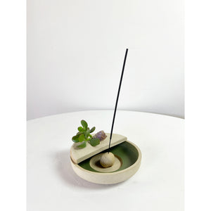 Temple Crucible in Jade and Buff - Incense Burner and Altar
