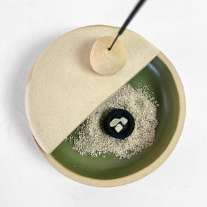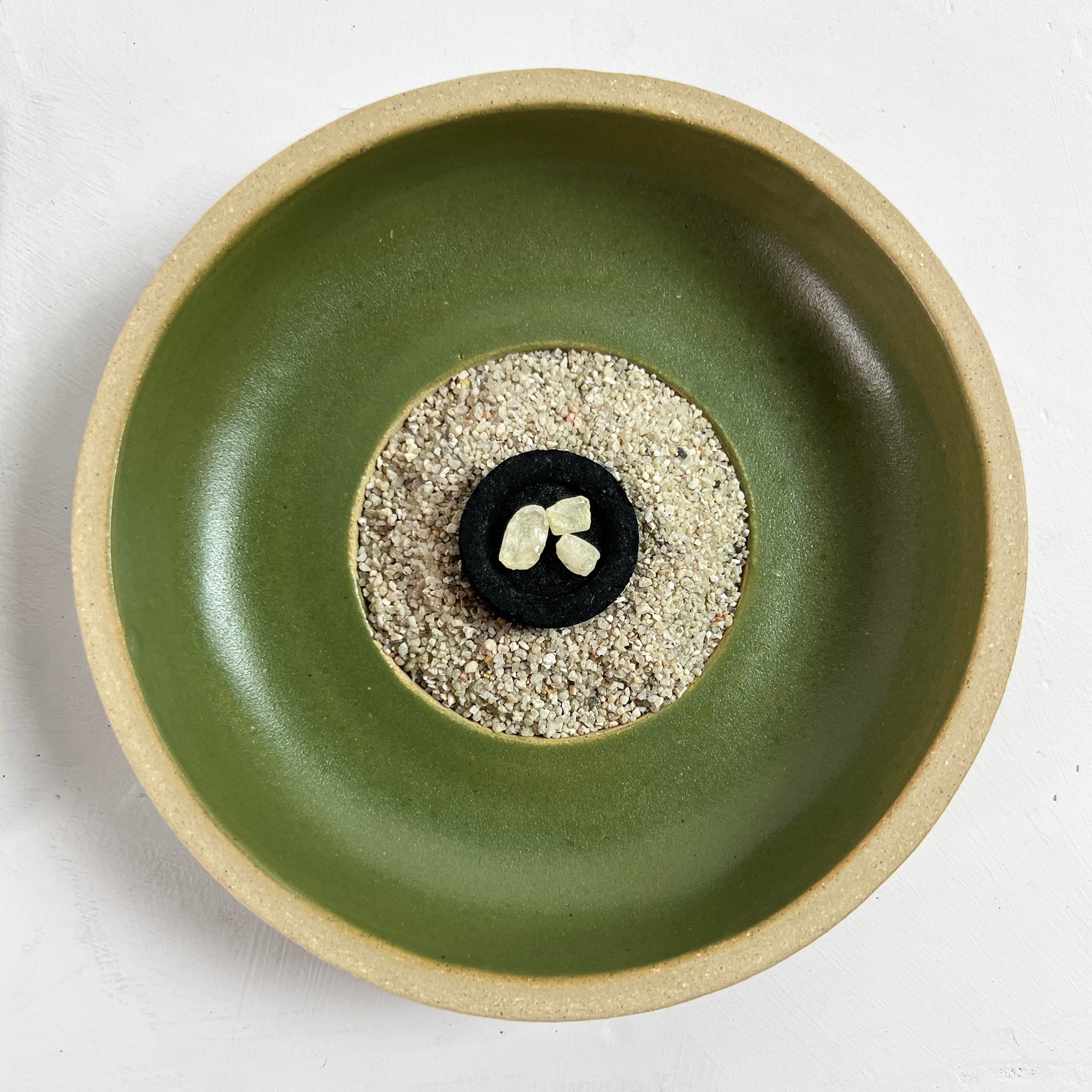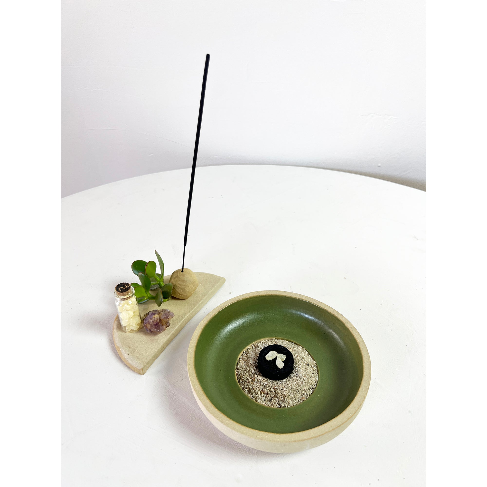 - bowl, for burning charcoal incense, rope and cone incense (with or without sand) or fill with water and float flowers and tea lights