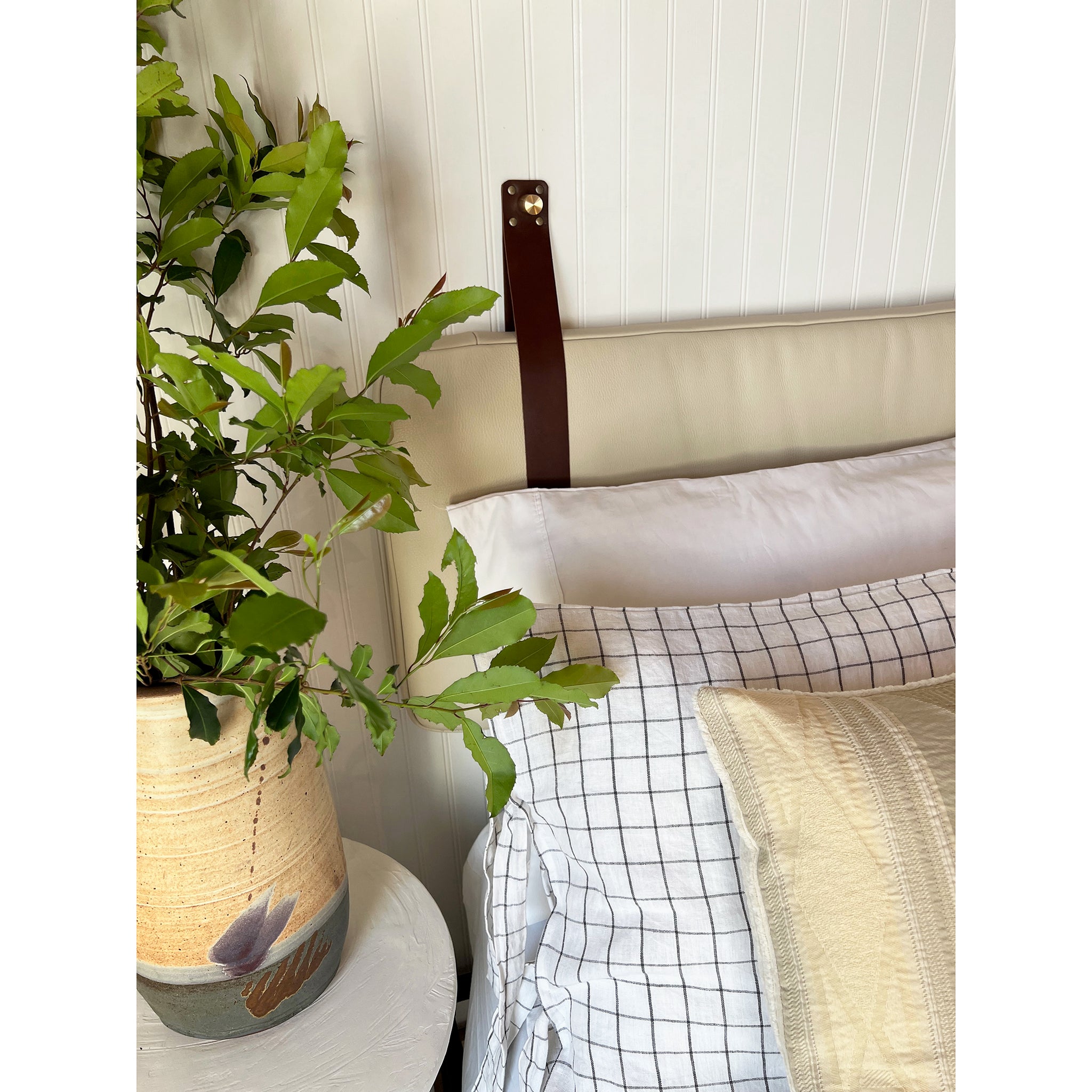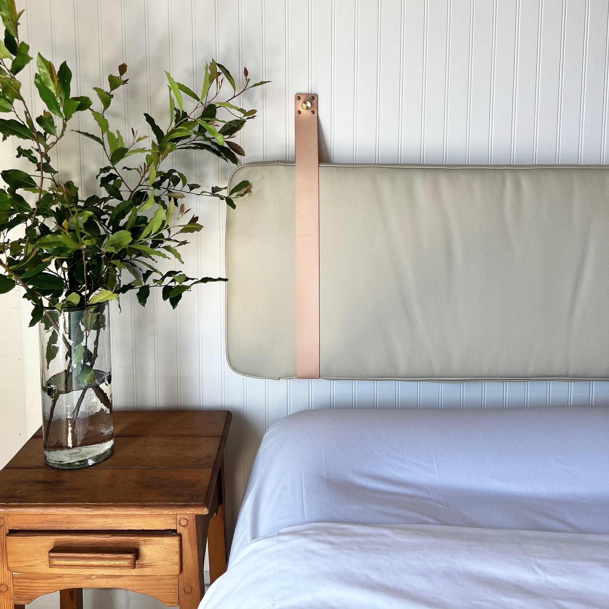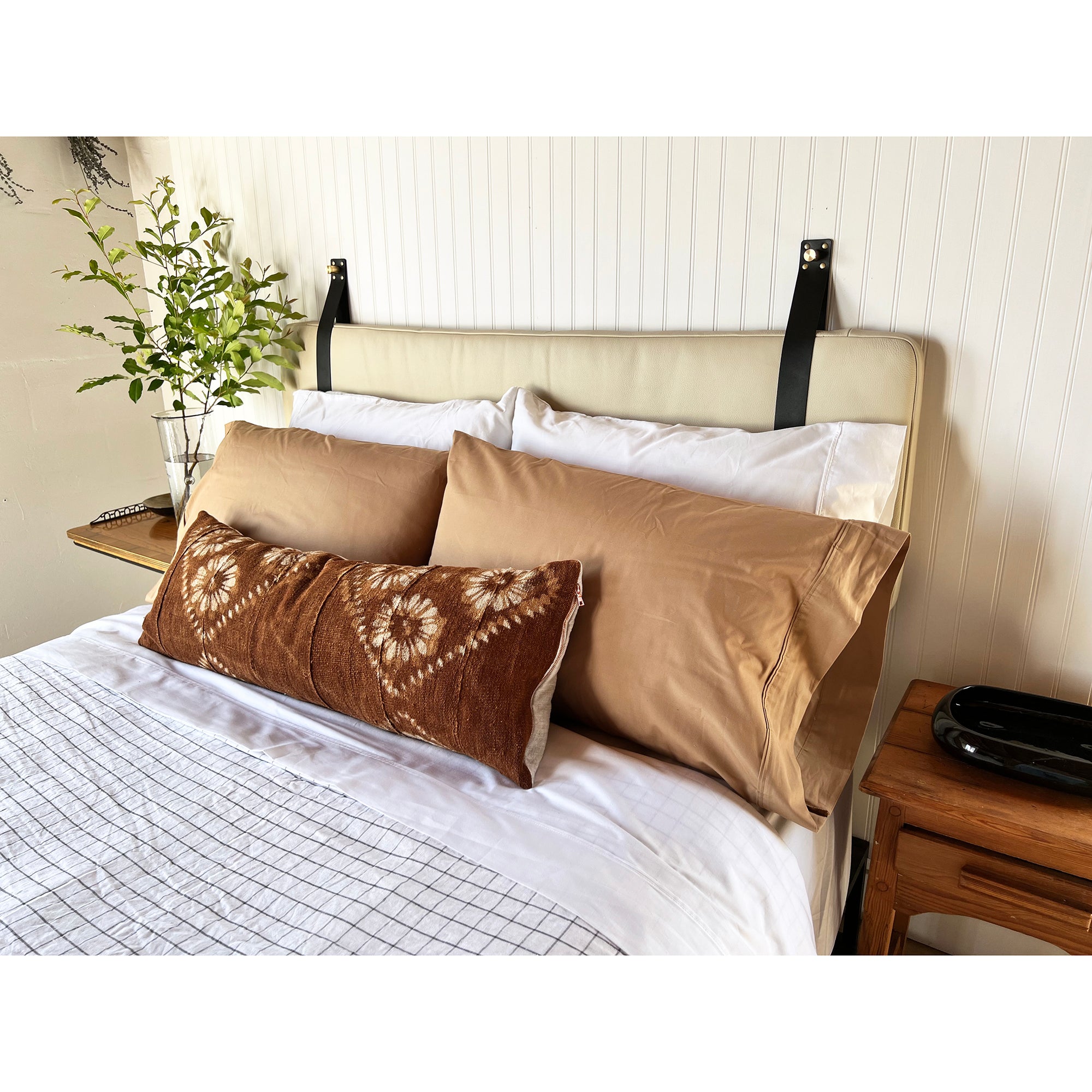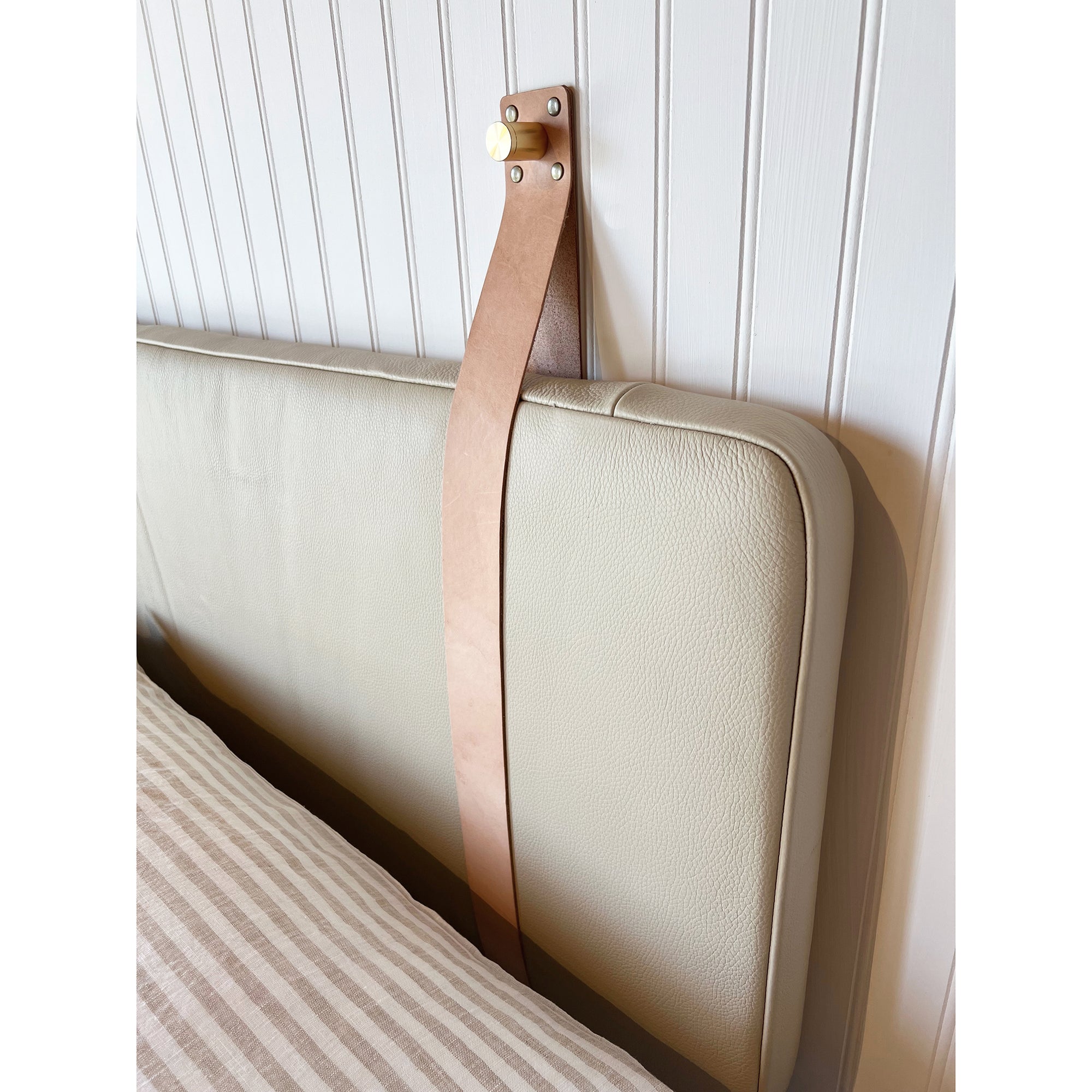 Sand Pebbled Leather Headboard or Backrest Cushion with Straps