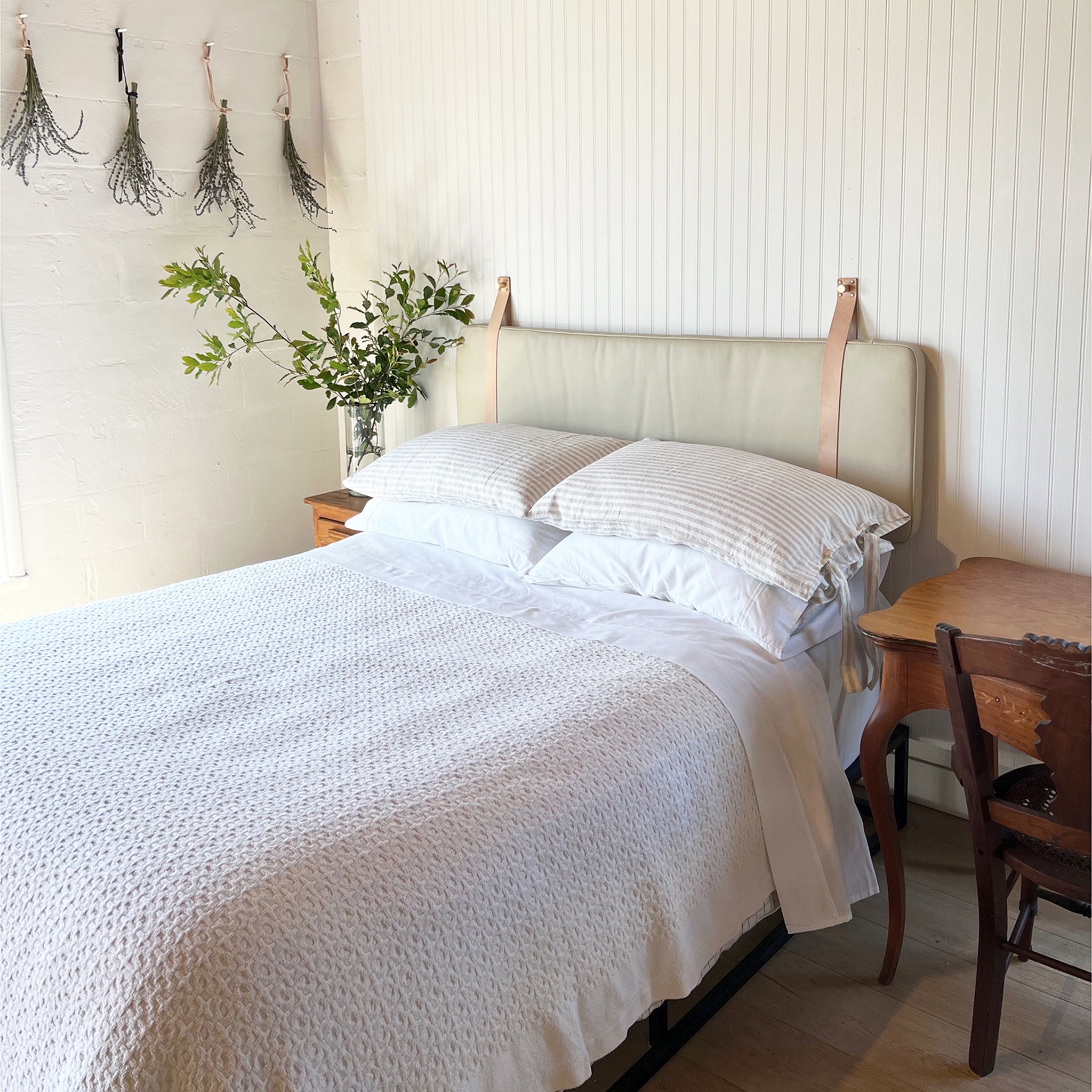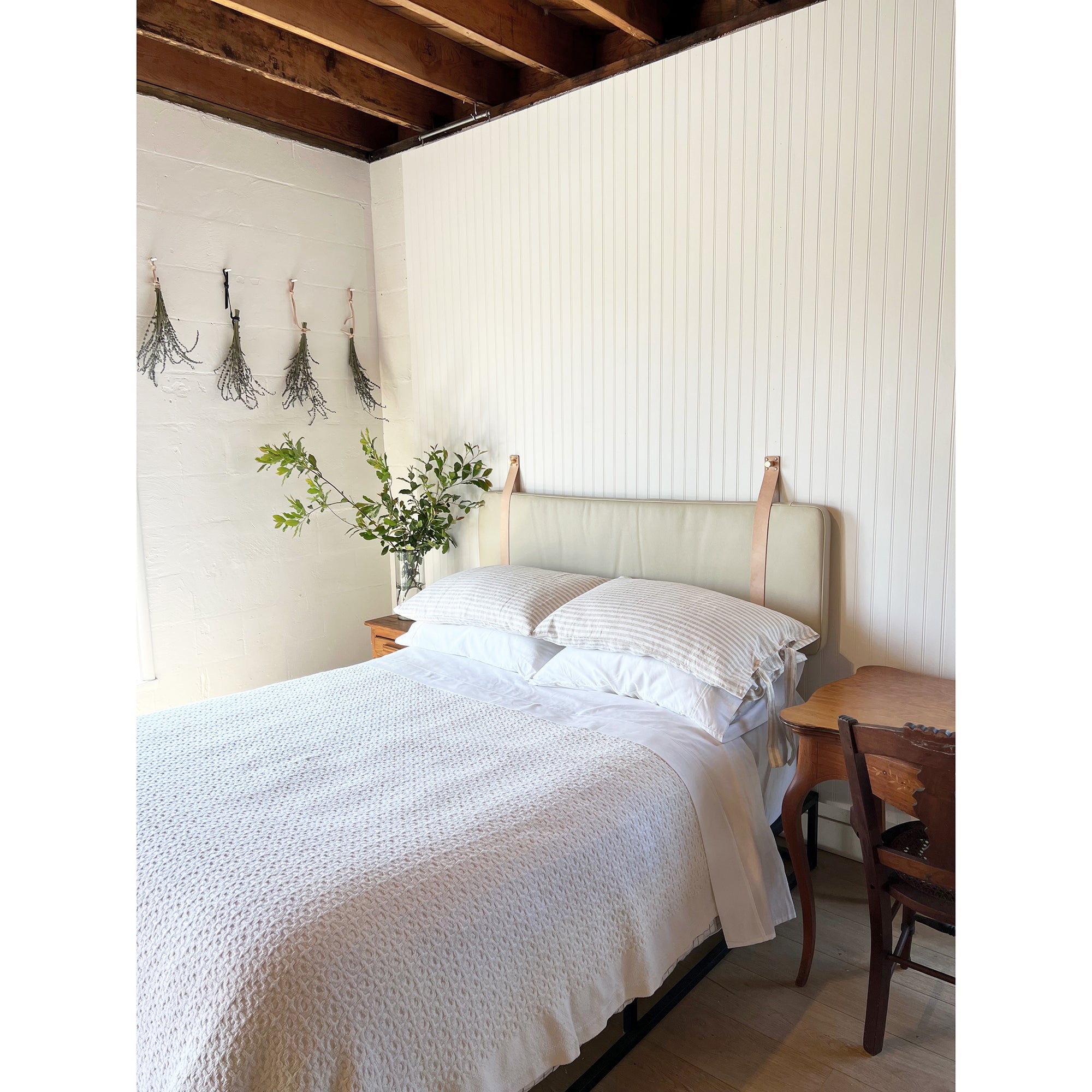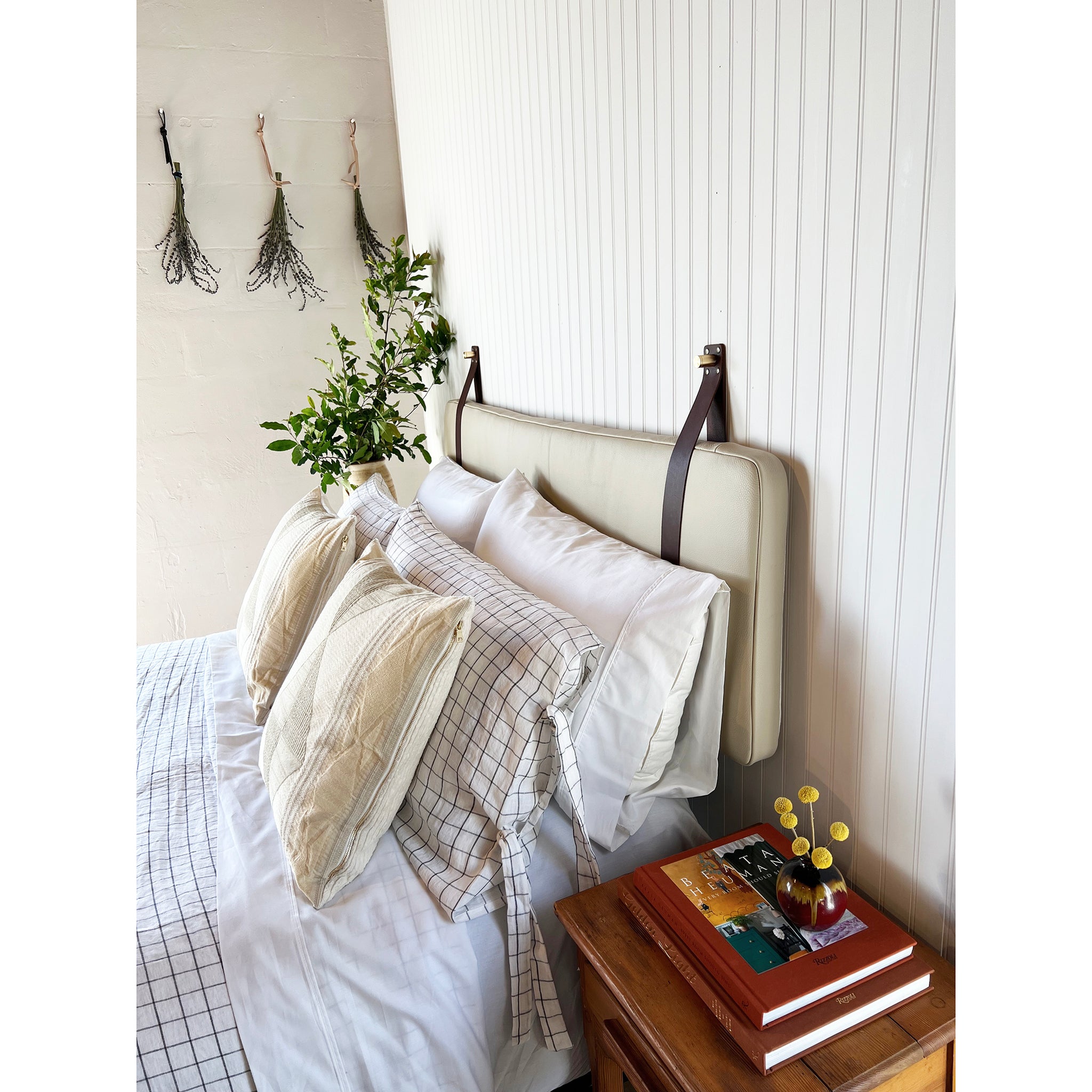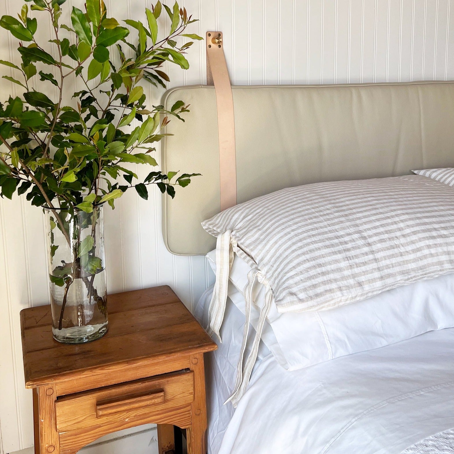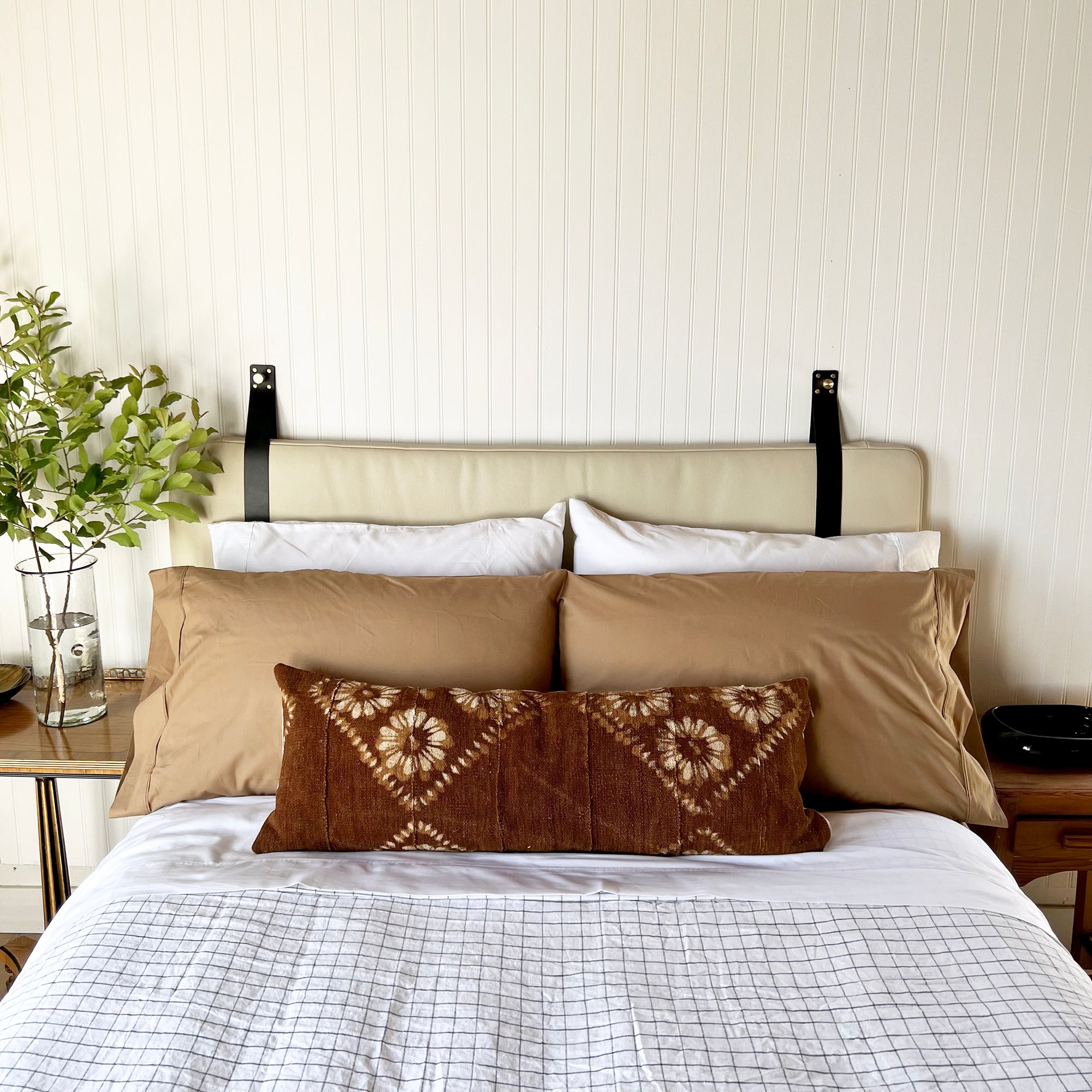 Sand Pebbled Leather Headboard or Backrest Cushion with Straps