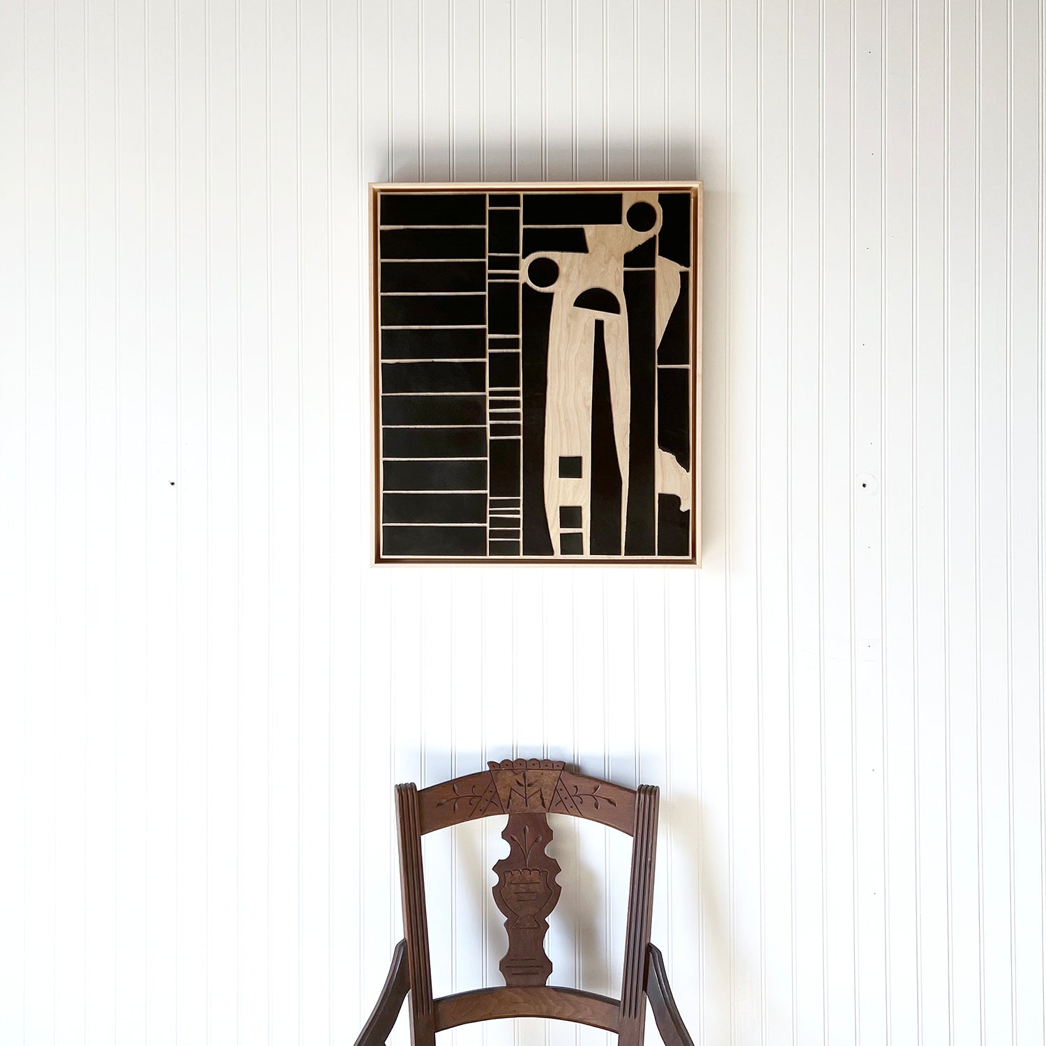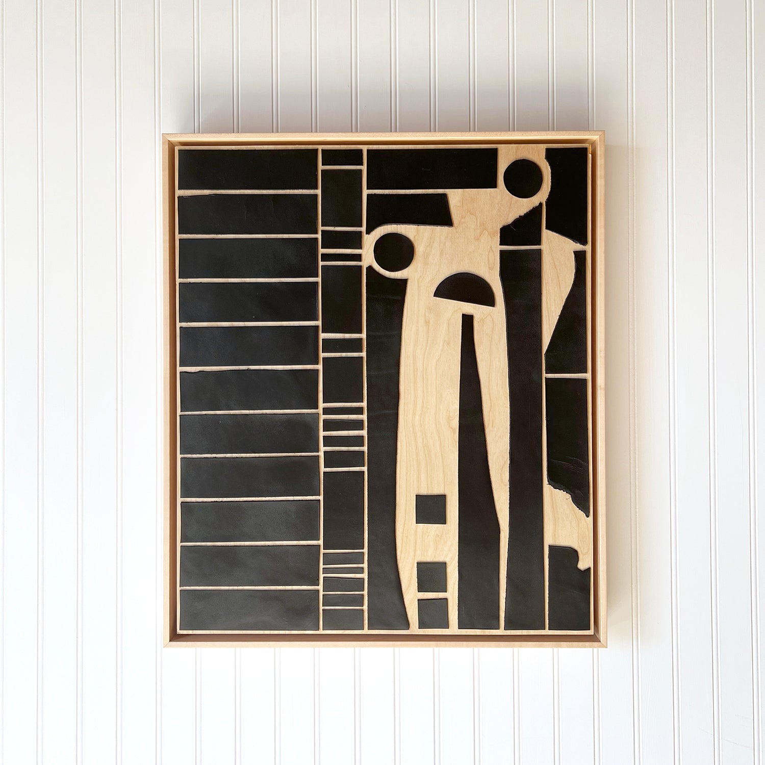 Metropolis I - Black Leather & Wood - 20" x 24"