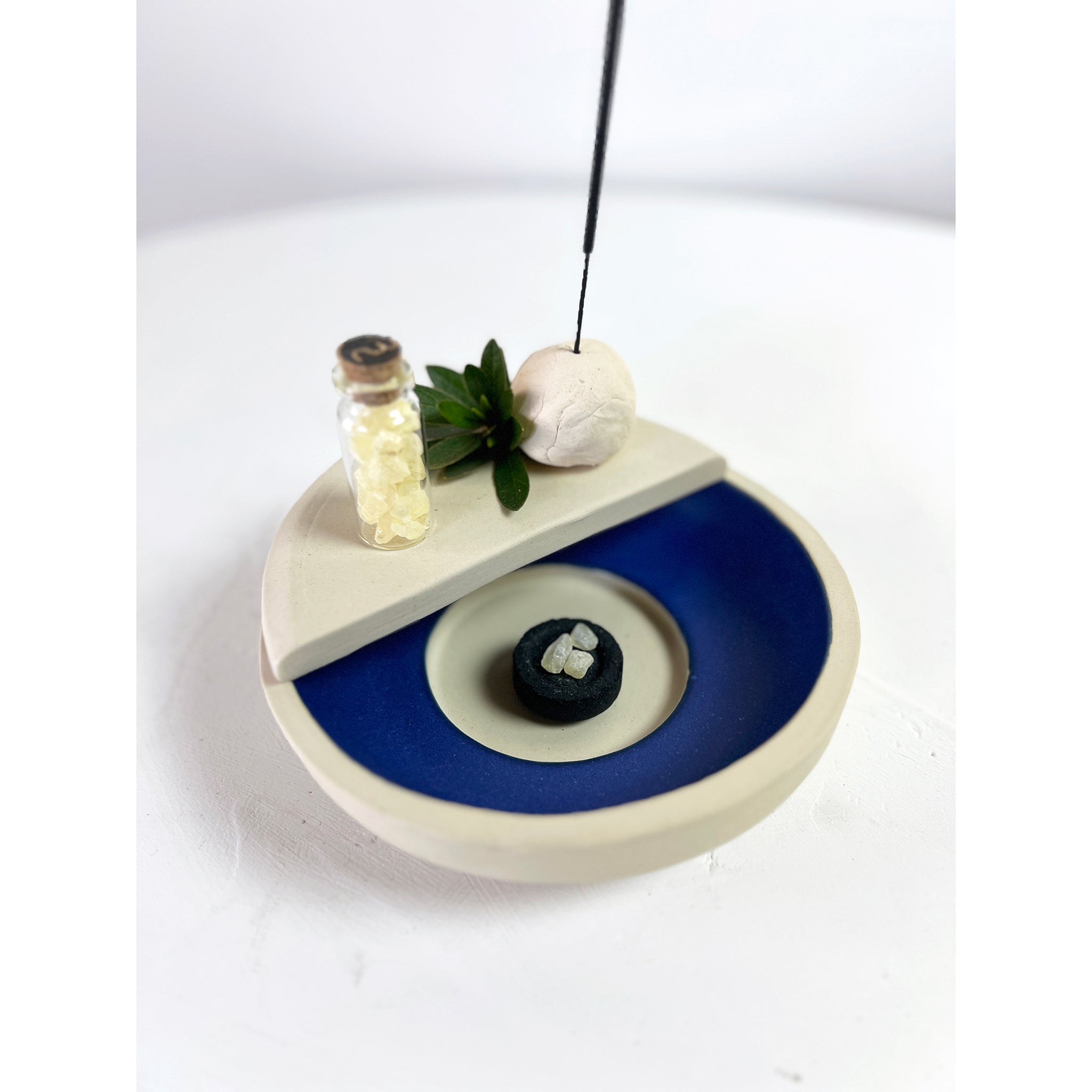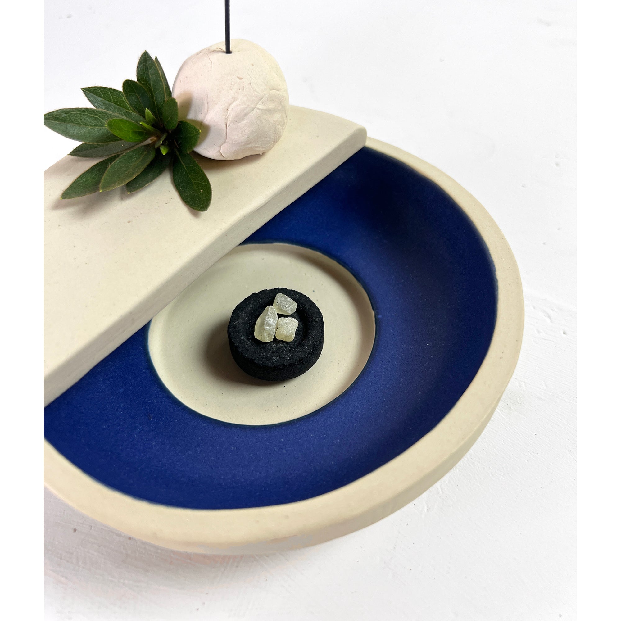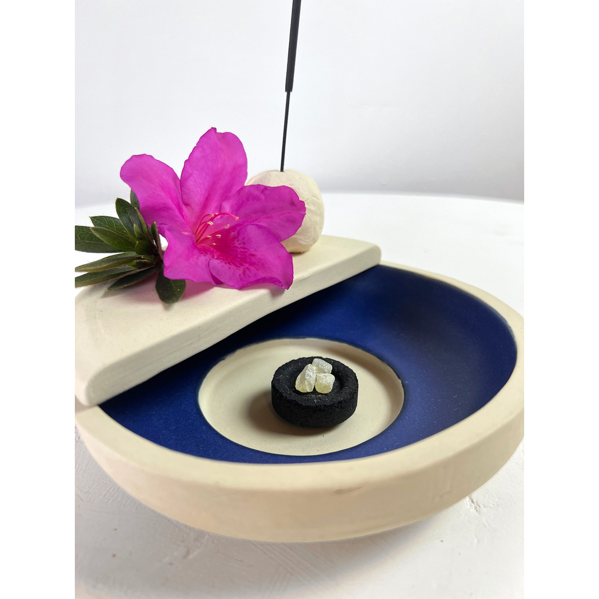 Capable of burning any kind of incense or smudge, this is the burner for incense people. With a short foot, sharp curves, and generous size, it's designed to make a statement on your altar, coffee table, or wherever you need some vibes.