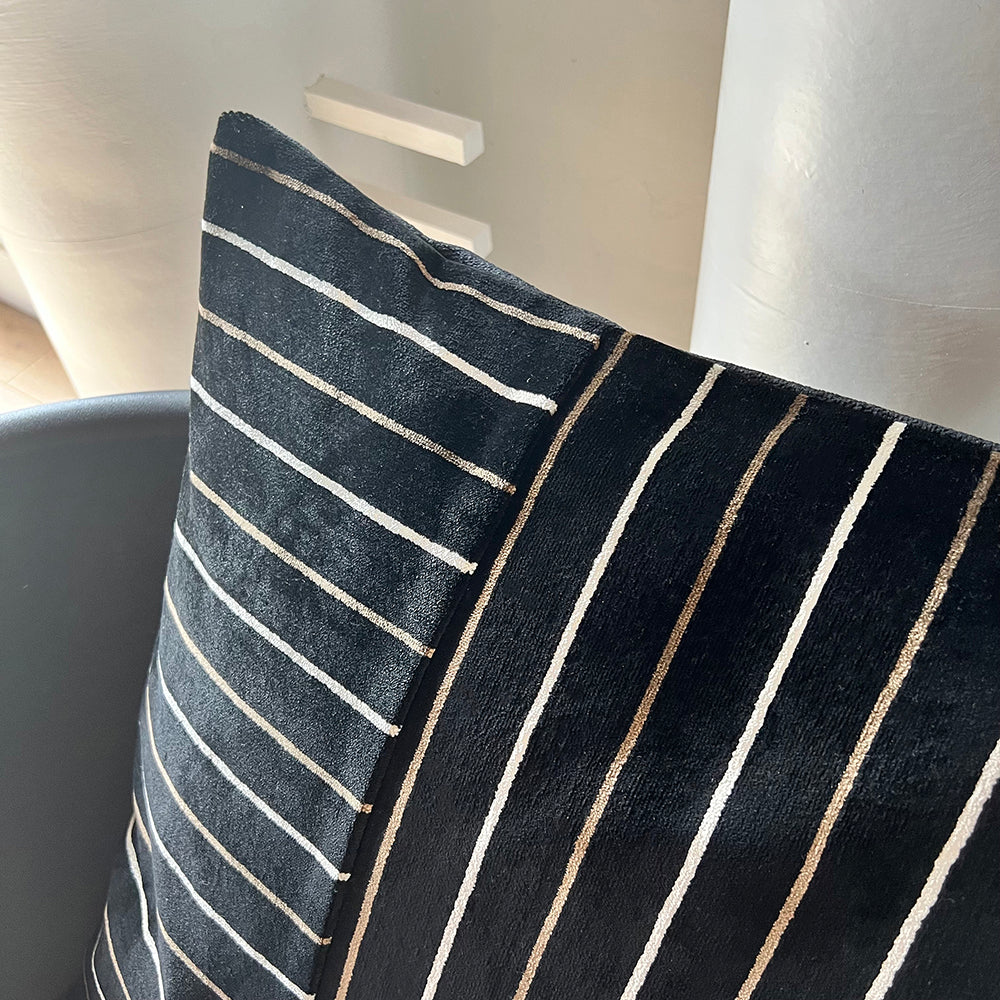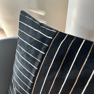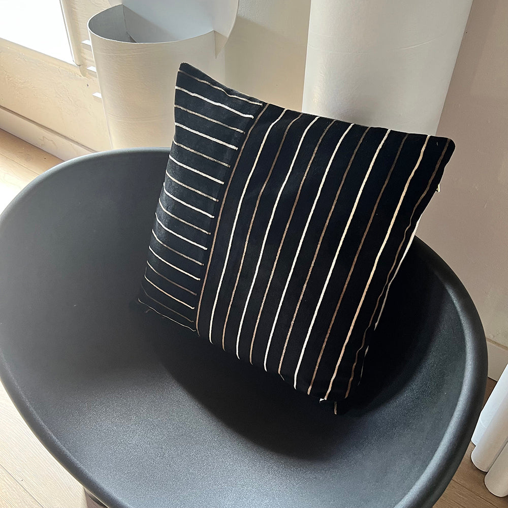 1980s vintage cotton velvet with a beige and white stripe that has been pieced together in opposing directions